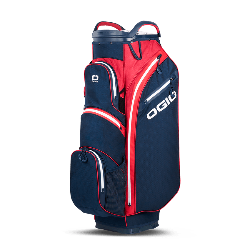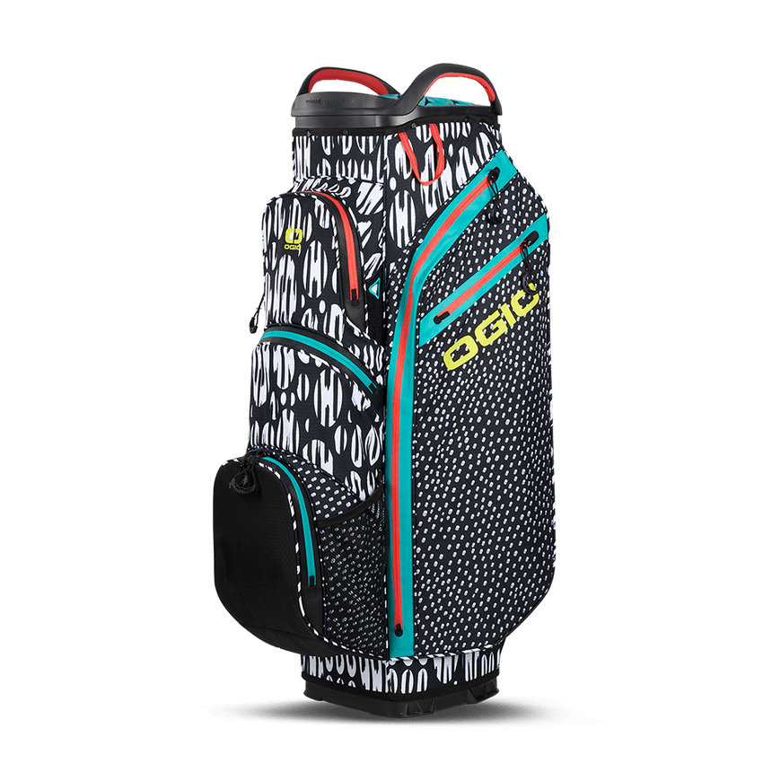 The ALL ELEMENTS range gets updated with OGIO's patented Silencer club protection system in our new 15 way moulded WOODĒ top cart bag. Along with new colours and patterns for 2024, the All Elements silencer bag offers seam sealed zippers and premium waterproof materials to keep all your golf gear dry when playing in any conditions while making a statement about your individual taste in golf bags! With superb storage and organisation features, lock down straps to your trolley and silencer Technology, this is the ideal cart bag for 2024.