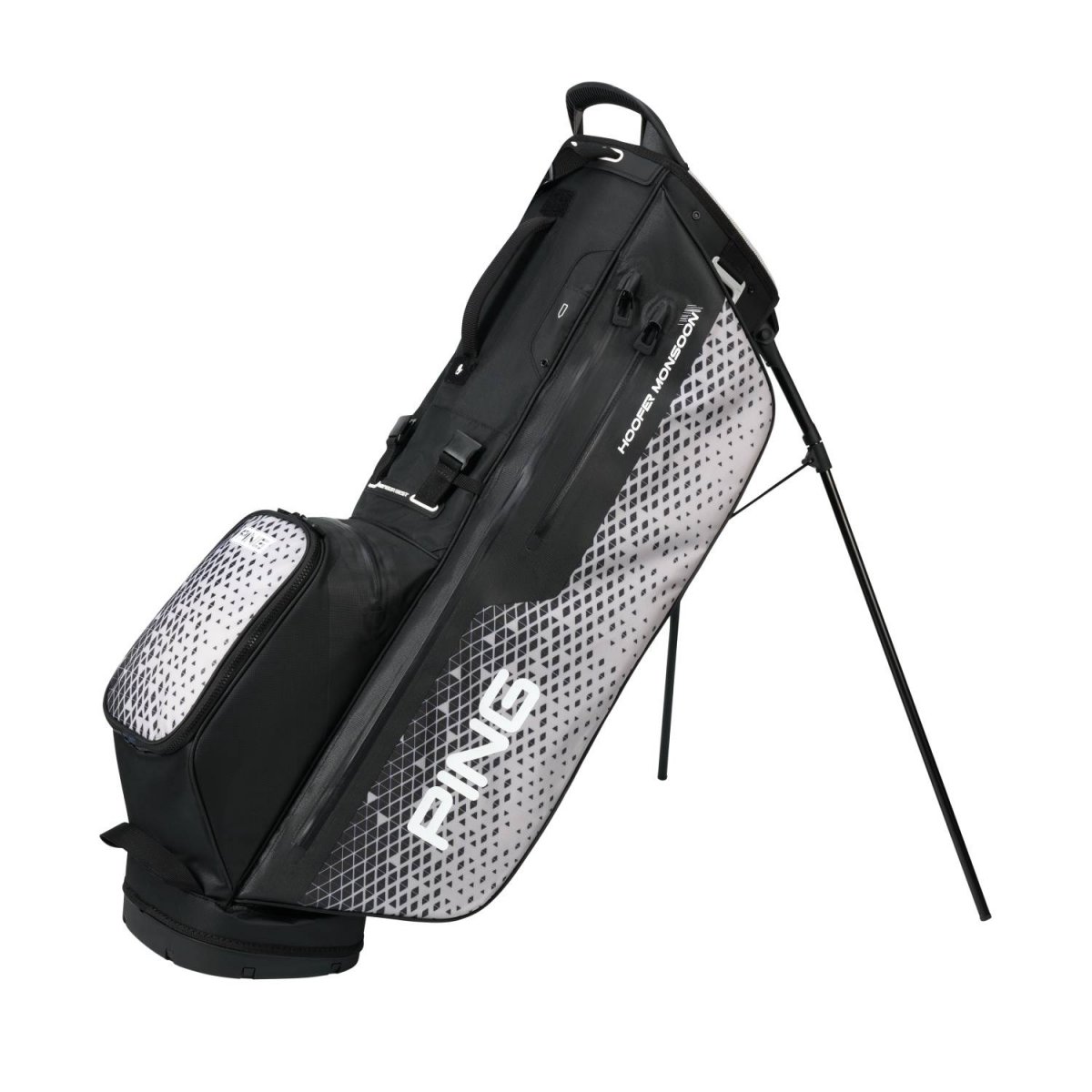 Featuring a highly innovative waterproof construction and four seam-sealed pockets (eight altogether), the lightweight and rugged Hoofer Monsoon bag stands ready, rain or shine. A deployable rain hood protects your clubs inside a rigid five-way top. Even the easy-adjusting, sliding shoulder pads feature SensorDry® Technology, to wick moisture away and keep you comfortable.
