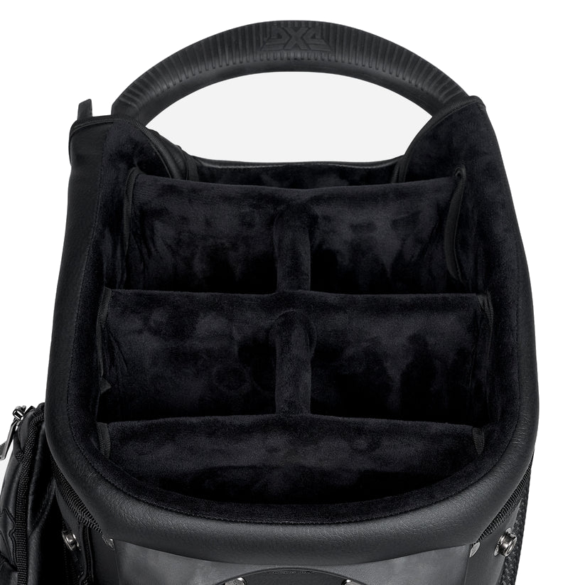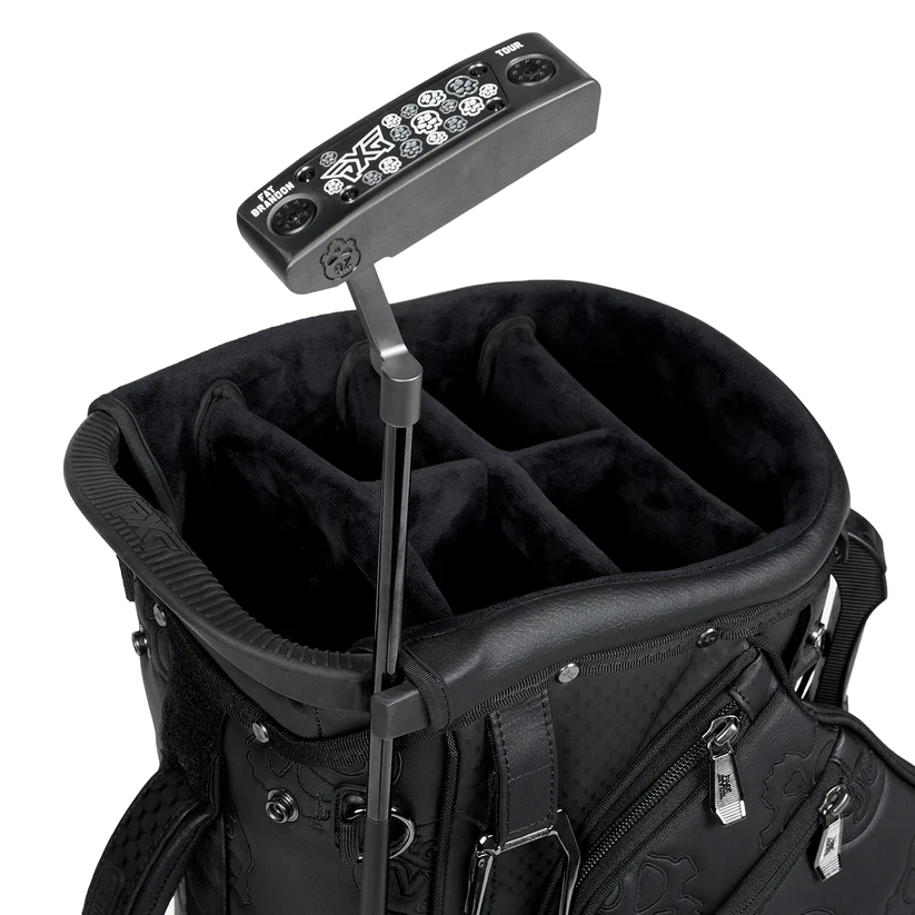 All that and a little bit extra, our PXG Deluxe Hybrid Stand Bag makes a statement on any golf course. Available in sleek white or black, it has the features of a cart bag with the versatility of a stand bag. A 6-way stop, 14 total pockets, magnetic feet and magnetic putter attachment are just a few of its abundant details. Walk or ride in style with this game-elevating bag.
