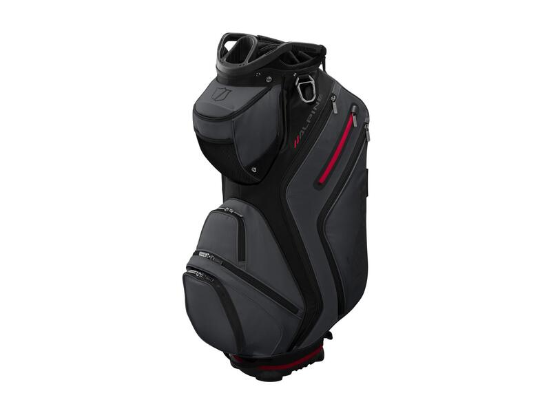 The Alpine Cart Bag reaches the summit in terms of features; 14-way full length dividers and a massive ice pocket take the riding golf experience to new heights.