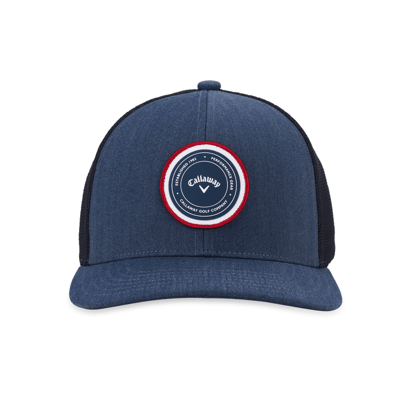 Breathable stretch mesh, X-Spann sweatband and patch logo design are taken to the course with this modern adjustable Trucker design.