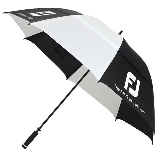 Must have equipment for the rain, the DryJoys Golf Umbrella offers lightweight 100% waterproof protection. Features: RUBBER HANDLE: This rubber handle design provides a strong, quality, comfort grip. WIND VENTS: These special shaped vents allow wind flow to prevent tearing. Colour: Black/White.