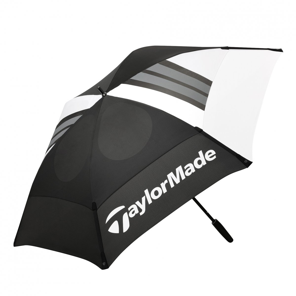 The 68 inch dual canopy construction with spring loaded tips helps to reinforce the structure. With elastic venting system to maintain rapid air release, and wide span to keep you totally dry and comfortable on rainy days or blustery days on the golf course. The umbrella also features a strong and lightweight aircraft aluminium shaft, with an ergonomic TaylorMade TPR/ABS logo handle for maximum comfort and grip.