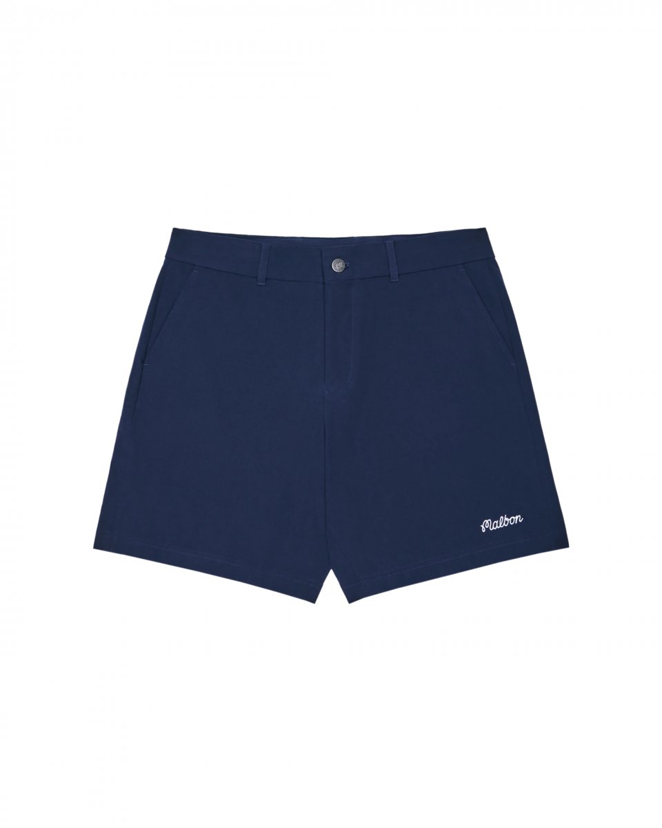 Cool where it counts, our Ripley Shorts are made with temperature-regulating Coolcore® fabric, relaxed tailoring, and just the right amount of Malbon embroidery. Pocket space included. Fabrication: 73% polyester 20% cotton 7% elastane Coolcore® fabric Zipper fly closure Malbon engraved button Embroidered Malbon script logo on front Woven Malbon flag label on back Size 34 has a 7" inseam