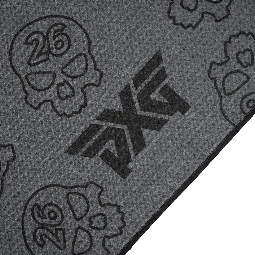 Our Darkness Repeat Player’s Towel brings fierce style to your golf bag. Patterned in our repeating Darkness Skull insignia on both sides, the microfiber waffle weave material will keep your clubs shiny and clean throughout your round. It features PXG logos on each end along with a woven loop to secure it to your bag.