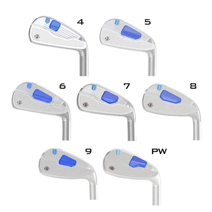 Loft-dependent positioning of the Tungsten and CMC components ensures precise COG placement in each iron. This progressive COG shift generates more launch in the long irons, controlled backspin in the scoring irons, and tighter dispersion while maintaining consistent gapping through the set.