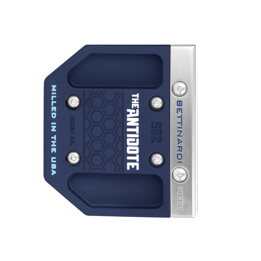 The Antidote SB1 has a Diamond Blast finish on the topline and body, reducing glare at address, and features a Sapphire Blue anodized 6061 Aluminum pocket insert.