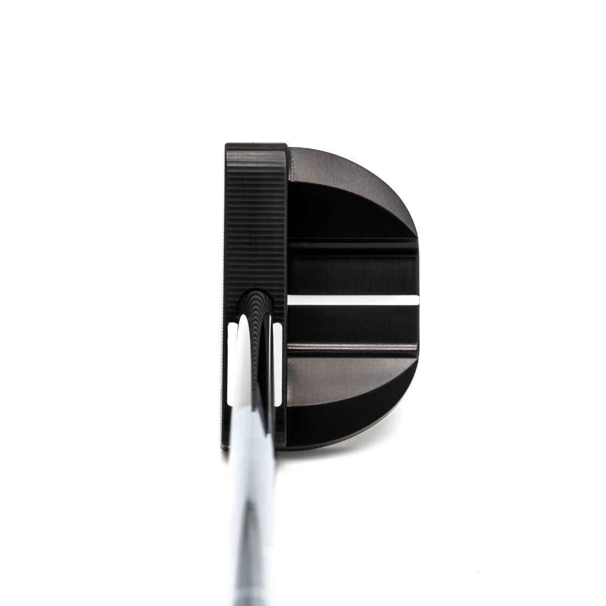 The two parallel white sight lines frame the shaft and serve as an indicator that the golfer is in perfect position to make a consistent and reliable stroke.
