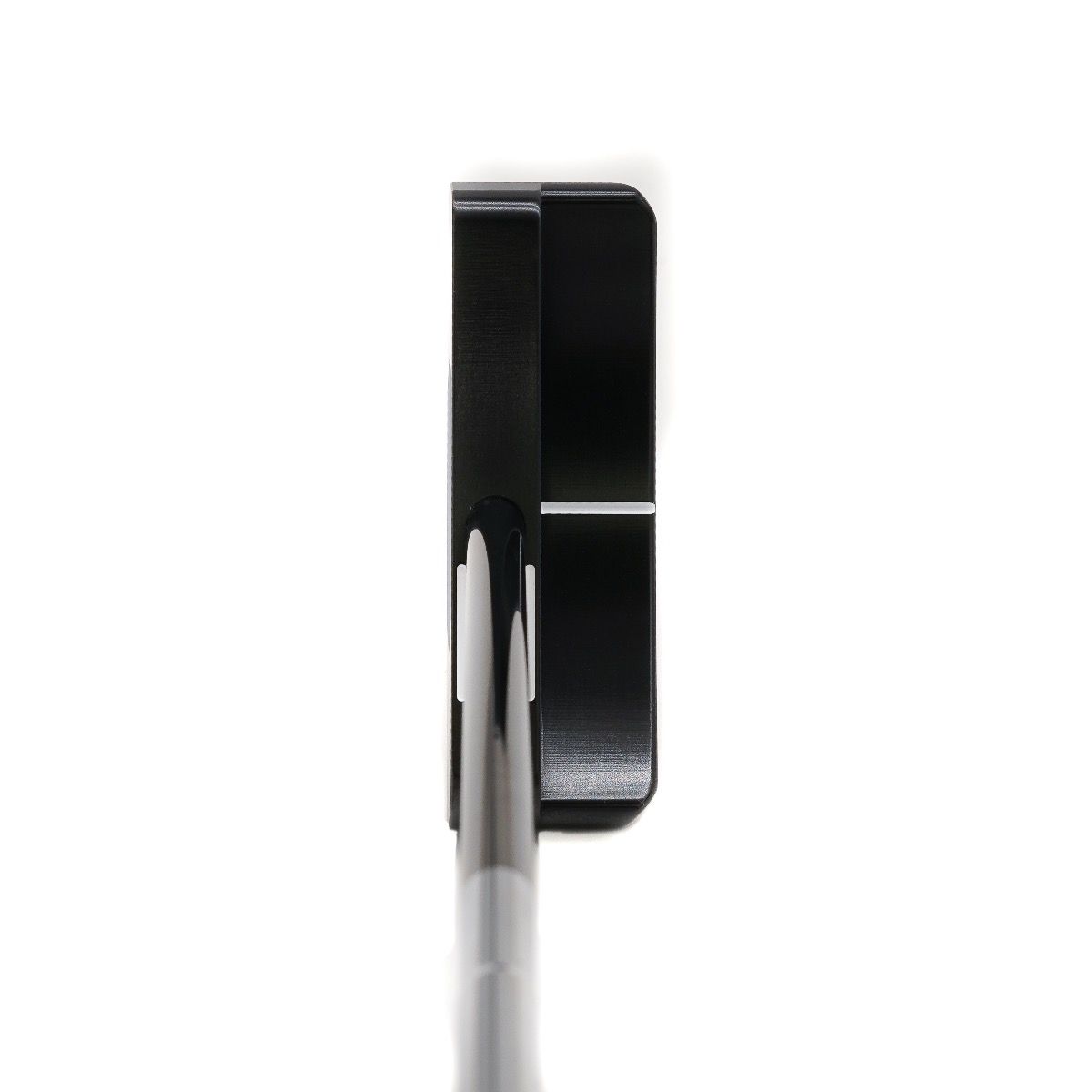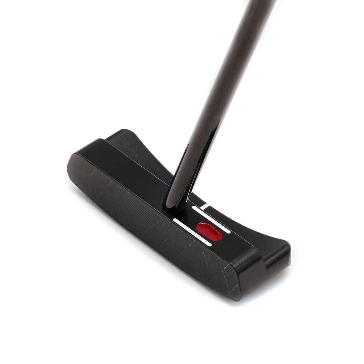 The two parallel white sight lines frame the shaft and serve as an indicator that the golfer is in perfect position to make a consistent and reliable stroke.
