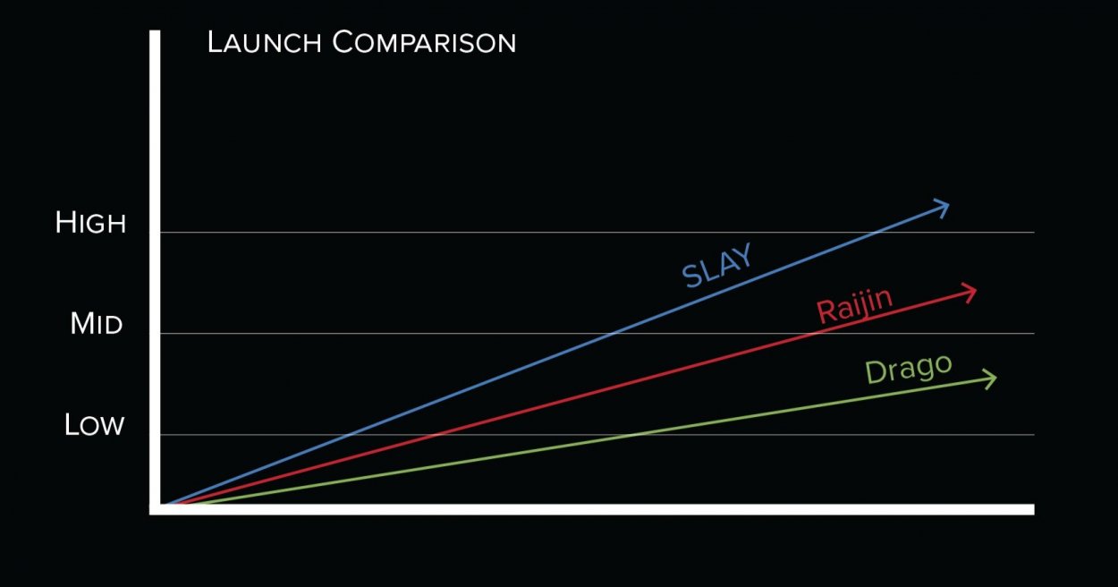 DRAGO presume de un rango de lanzamiento medio-alto y características de giro bajo. En comparación con RAIJIN, DRAGO tiene el perfil de flexión más rígido, las secciones de punta y culata más rígidas y generalmente proporciona el lanzamiento más bajo. DRAGO utiliza los materiales preimpregnados más exóticos para obtener mejor sensación y rendimiento.